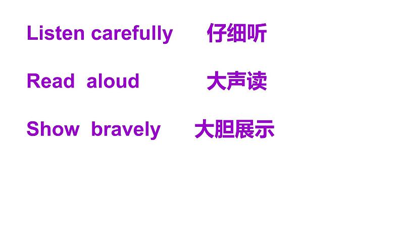 展开Listen carefully 仔细听 Read alud 大声读Shw bravely 大胆展示