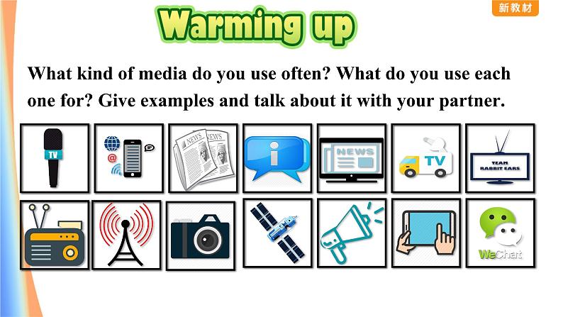 What kind f media d yu use ften? What d yu use each ne fr? Give examples and talk abut it with yur partner.