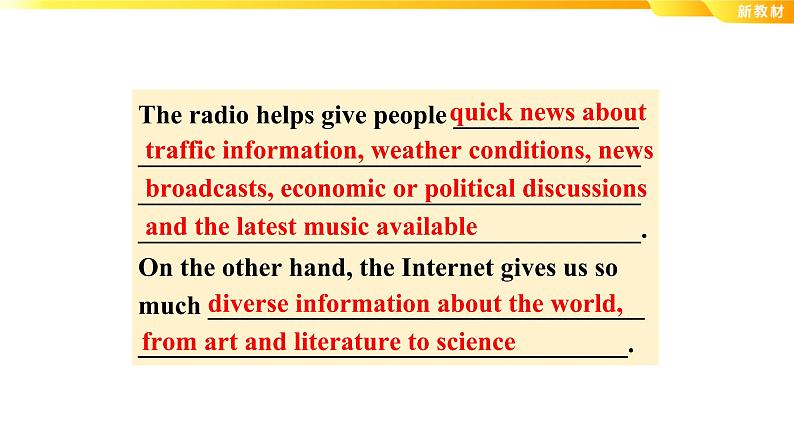 The radi helps give peple ________________________________________________________________________________________________________________________________. On the ther hand, the Internet gives us s much ______________________________________________________________________.