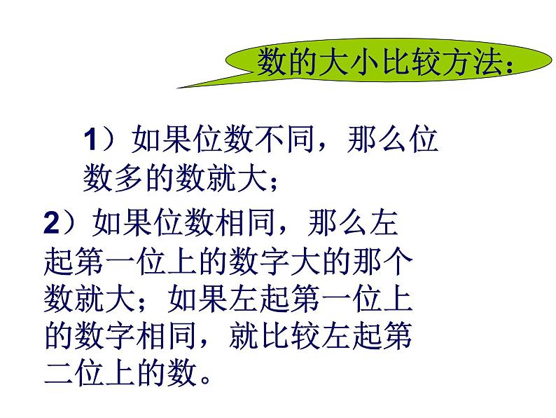 2)如果位数相同,那么左起第一位上的数字大的那个数就大;如果左起第一位上的数字相同,就比较左起第二位上的数。