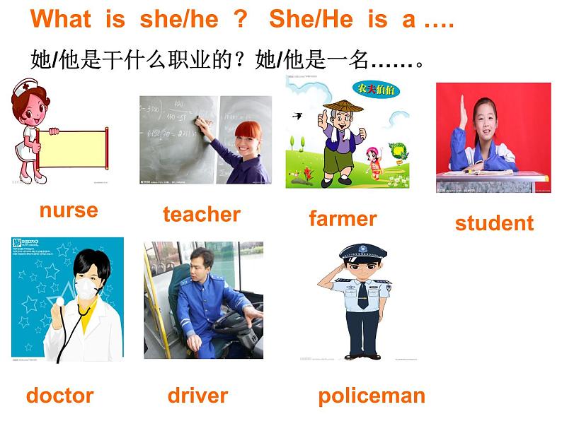 展开What is she/he ? She/He is a ….她/他是干什么职业的?她/他是一名……。