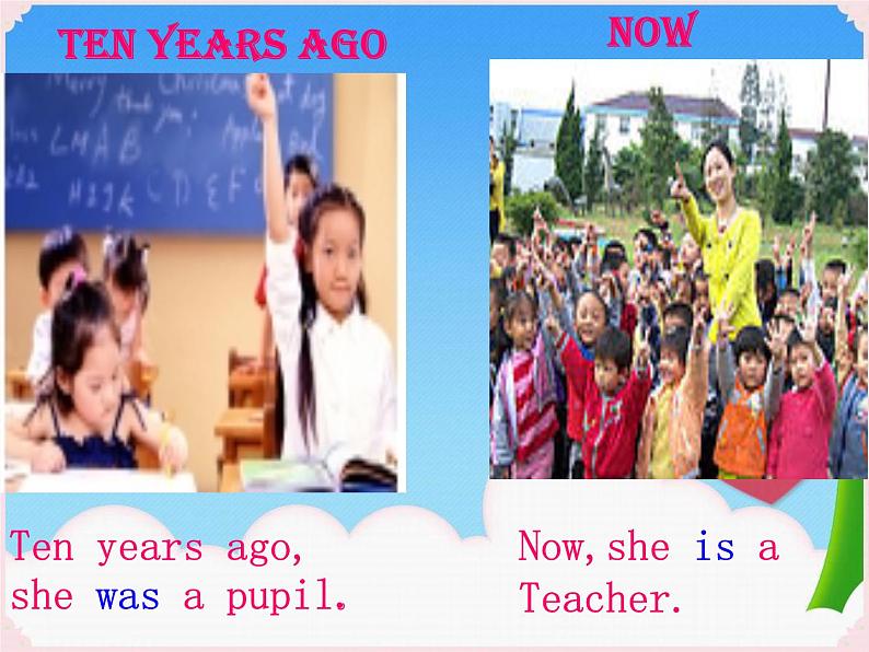 Ten years ag, what was she/he ? She/He was a ….她/他是干什么职业的?她/他是一名……。