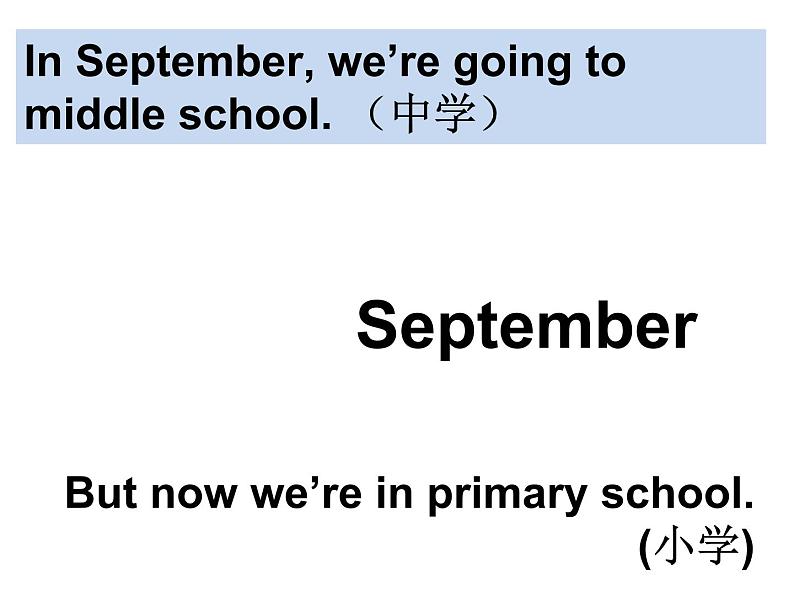 1.middle 中间的2.middle schl 中学3.speech 演讲4.classmate 同班同学5.leave 离开6.September 九月7.excited 激动的