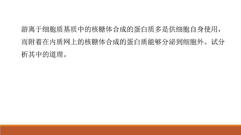 游离于细胞质基质中的核糖体合成的蛋白质多是供细胞自身使用,而附着在内质网上的核糖体合成的蛋白质能够分泌到细胞外。试分析其中的道理。