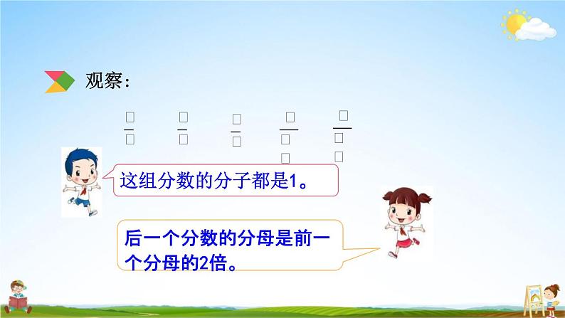 这组分数的分子都是1。后一个分数的分母是前一 个分母的2倍。