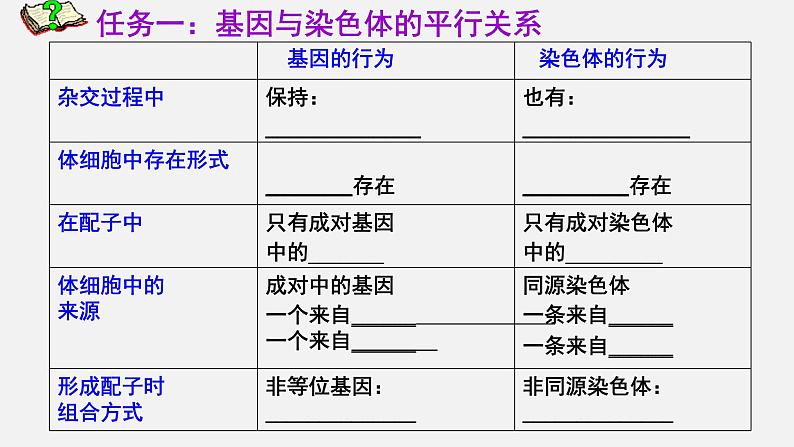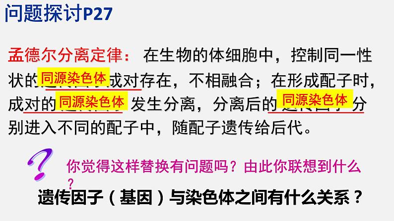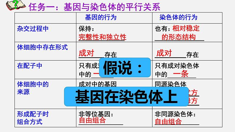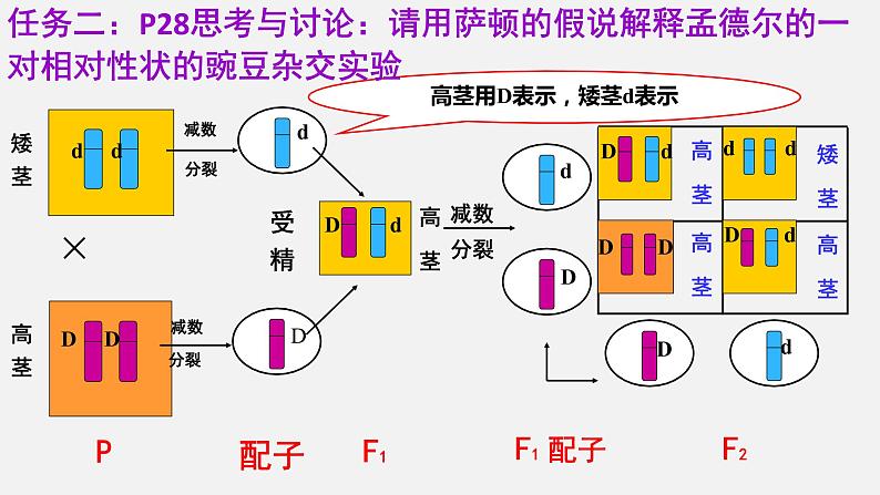 任务二:P28思考与讨论:请用萨顿的假说解释孟德尔的一对相对性状的豌豆杂交实验