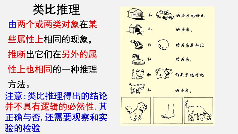 注意:类比推理得出的结论并不具有逻辑的必然性.其正确与否,还需要观察和实验的检验