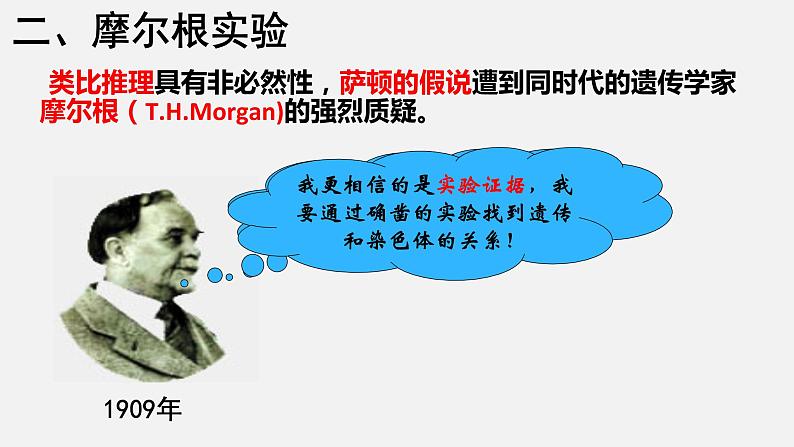 类比推理具有非必然性,萨顿的假说遭到同时代的遗传学家摩尔根()的强烈质疑。