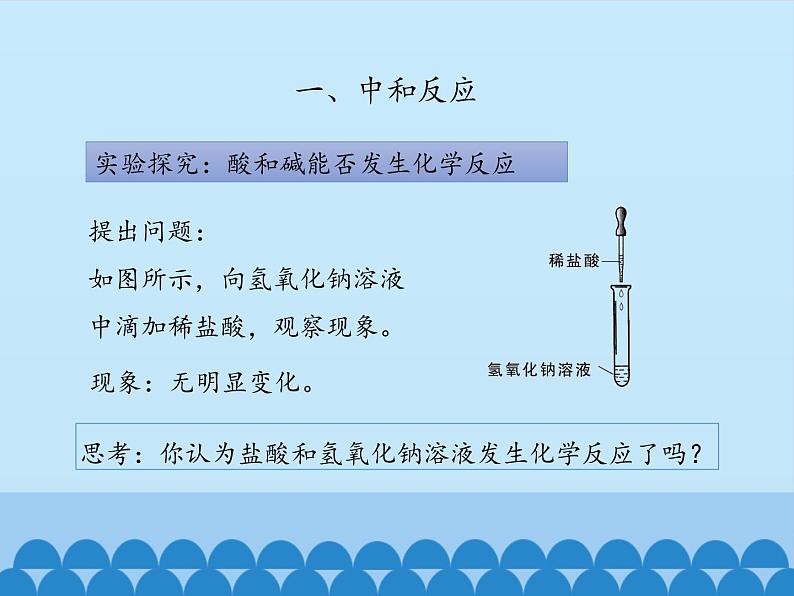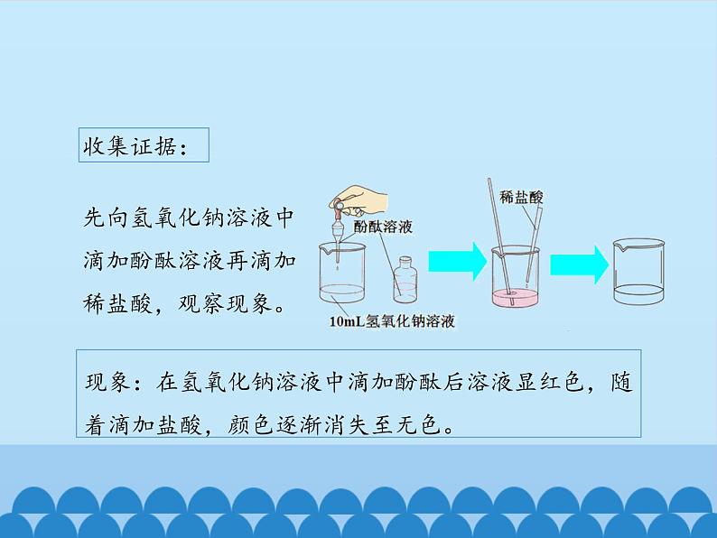 提出问题:如图所示,向氢氧化钠溶液中滴加稀盐酸,观察现象。