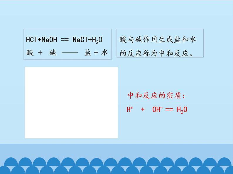 HCl+NaOH == NaCl+H2O酸 + 碱 —— 盐 + 水