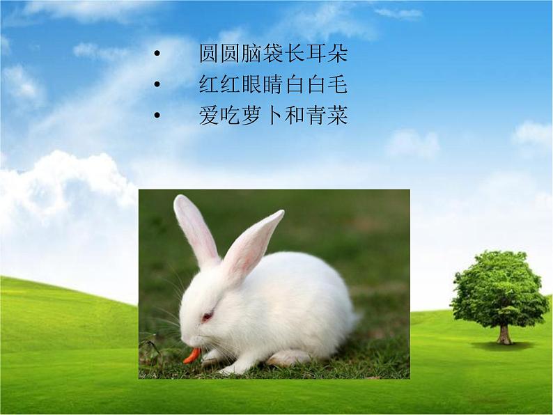 展开圆圆脑袋长耳朵 红红眼睛白白毛 爱吃萝卜和青菜