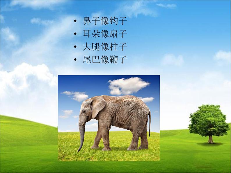 鼻子像钩子耳朵像扇子大腿像柱子尾巴像鞭子