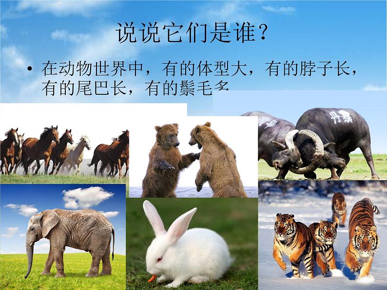 在动物世界中,有的体型大,有的脖子长,有的尾巴长,有的鬃毛多……