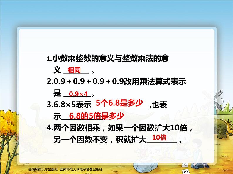 小学数学西师大版五年级上册小数乘小数课文内容ppt课件