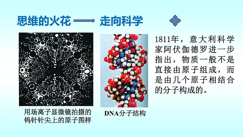 1811年,意大利科学家阿伏伽德罗进一步指出,物质一般不是直接由原子组成,而是由几个原子相结合的分子构成的。