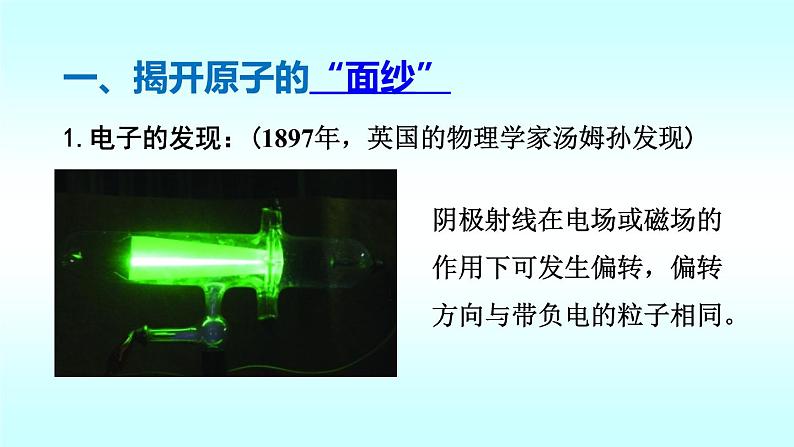 1.电子的发现:(1897年,英国的物理学家汤姆孙发现)