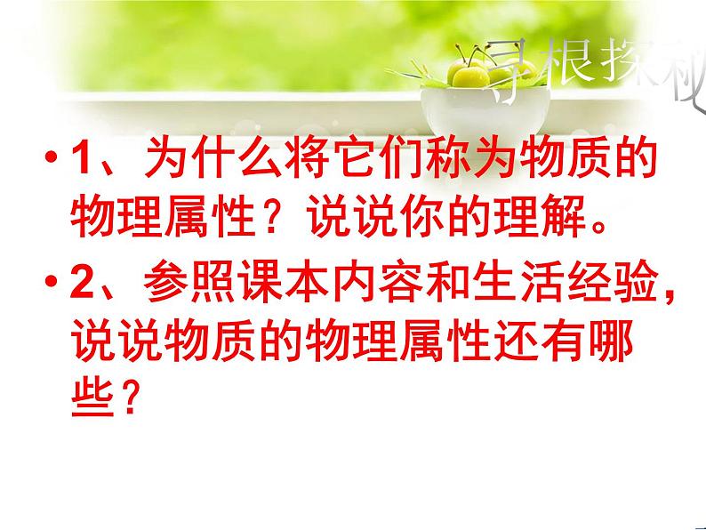 展开1、为什么将它们称为物质的物理属性?说说你的理解。2、参照课本内容和生活经验,说说物质的物理属性还有哪些?