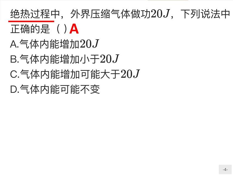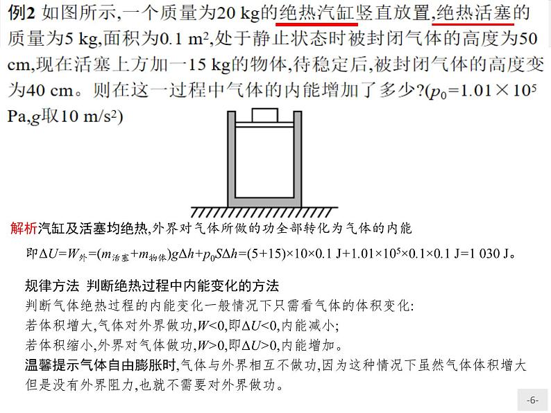 解析汽缸及活塞均绝热,外界对气体所做的功全部转化为气体的内能