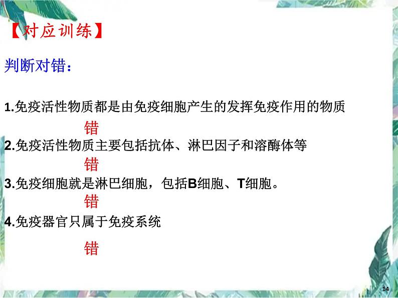 判断对错:1.免疫活性物质都是由免疫细胞产生的发挥免疫作用的物质2.免疫活性物质主要包括抗体、淋巴因子和溶酶体等3.免疫细胞就是淋巴细胞,包括B细胞、T细胞。4.免疫器官只属于免疫系统