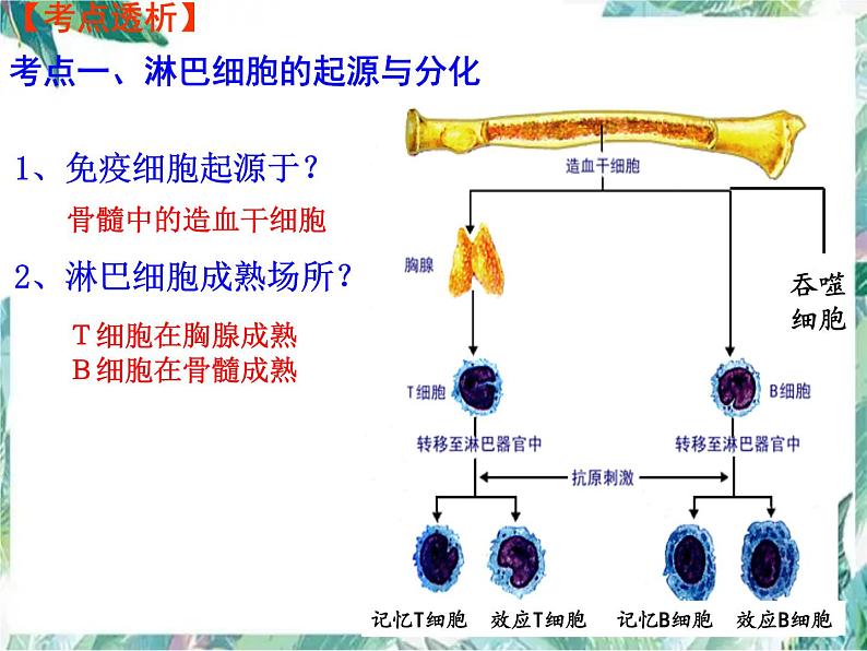 注意:吞噬细胞(非特异性识别)、浆细胞(无识别功能)