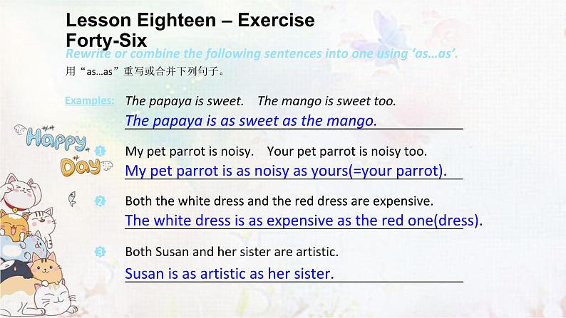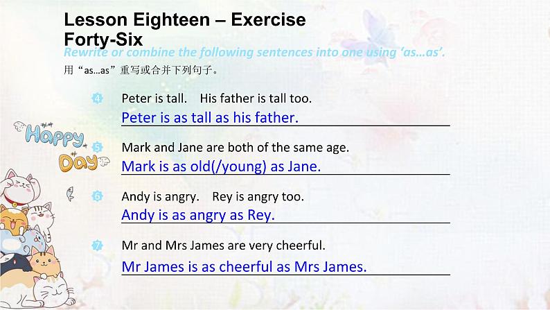 当两件东西具有相同的性质时,我们使用连接词“as+…+as”来比较它们,在它们之间放置一个形容词。