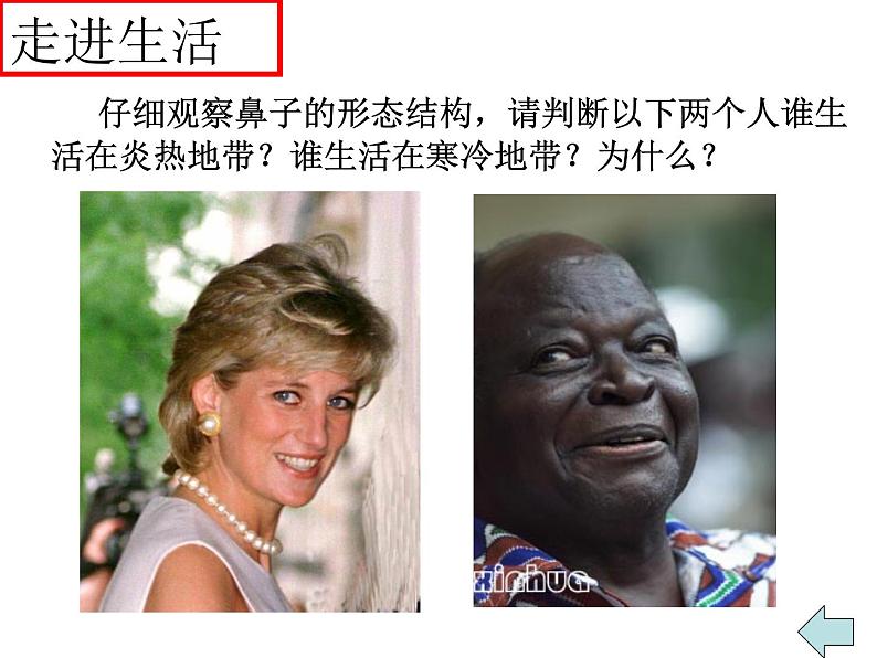 仔细观察鼻子的形态结构,请判断以下两个人谁生活在炎热地带?谁生活在寒冷地带?为什么?