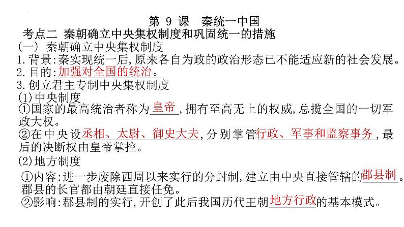 七年级上册第三单元秦汉时期:统一多民族国家的建立和巩固复习课件2022年中考考点专项突破