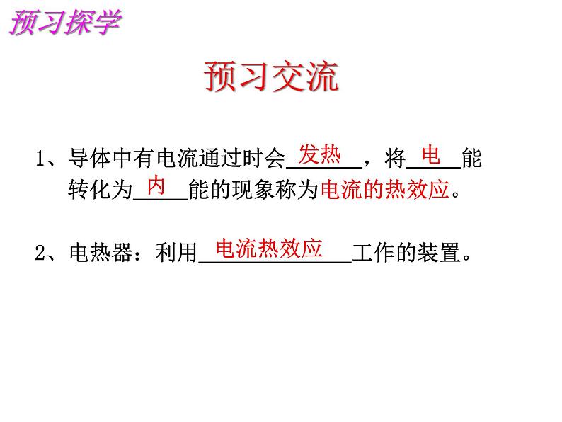 1、导体中有电流通过时会 ,将 能 转化为 能的现象称为电流的热效应。2、电热器:利用 工作的装置。