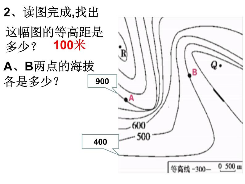 (1).图中山顶的海拔高度可能是( ) A.440米 B.400米 C.531米 D.395米