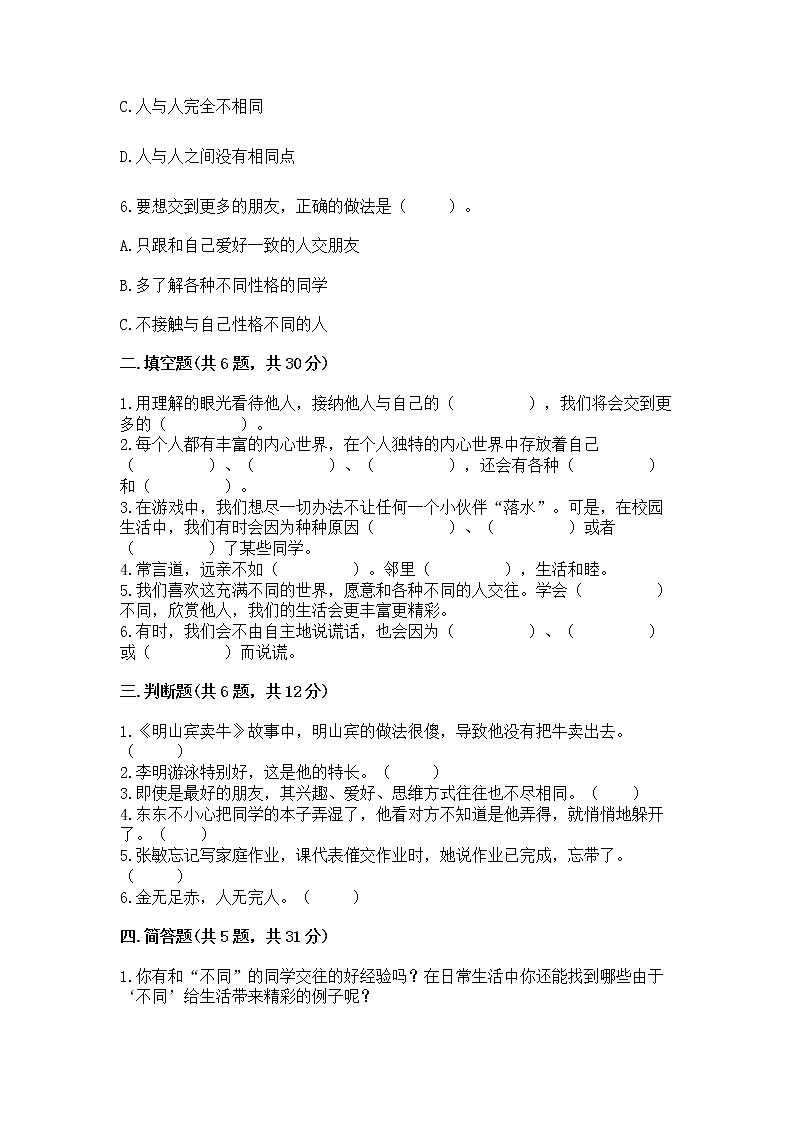 1.用理解的眼光看待他人,接纳他人与自己的( ),我们将会交到更多的( )。