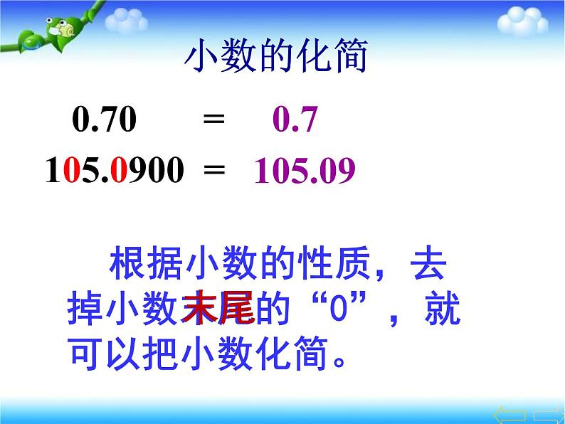 根据小数的性质,去掉小数末尾的“0”,就可以把小数化简。
