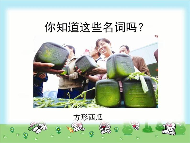这是一份初中生物北师大版八年级下册第九单元 生物技术第25章 生物技术第1节 发酵技术说课ppt课件,共32页。PPT课件主要包含了生物技术发展史,方形西瓜,发酵食品的优点,发酵食品的隐患,酸奶制作步骤,将容器消毒,牛奶加入糖煮开,加入酸奶,摇均加盖,将容器消毒米洗净等内容,欢迎下载使用。