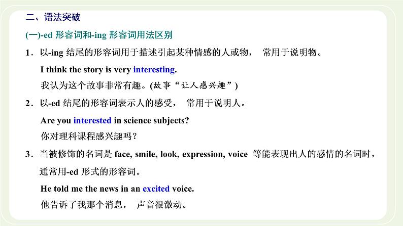 2.以ed结尾的形容词表示人的感受, 常用于说明人。