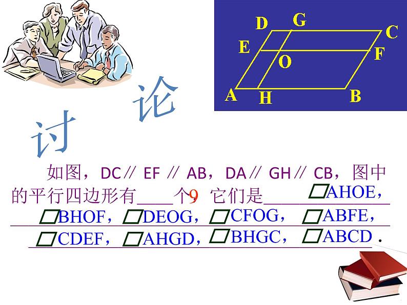 如图,DC∥ EF ∥ AB,DA∥ GH∥ CB,图中的平行四边形有__个,它们是_______________________________________________