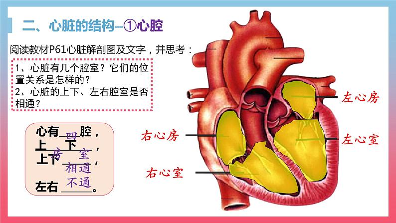 1、心脏有几个腔室?它们的位置关系是怎样的?2、心脏的上下、左右腔室是否相通?