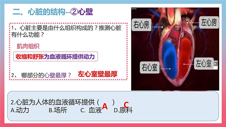 1、心脏主要是由什么组织构成的?推测心脏有什么功能? 2、 哪部分的心壁最厚?