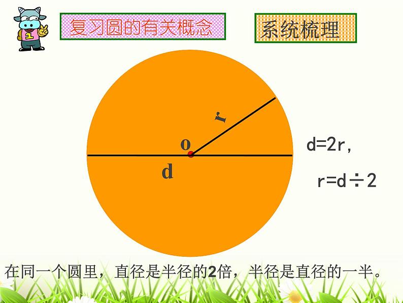 在同一个圆里,直径是半径的2倍,半径是直径的一半。