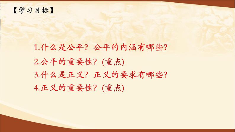初中政治 (道德与法治)公平正义的价值课前预习ppt课件: 这是一份初中政治 (道德与法治)公平正义的价值课前预习ppt课件,共31页。PPT课件主要包含了教学目标,活动一小故事等内容,欢迎下载使用。