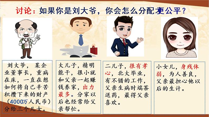 讨论:如果你是刘大爷,你会怎么分配才更公平?