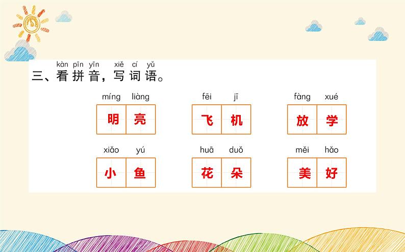 机朵亮木几明 亮飞 机放 学小 鱼花 朵美 好高高的绿绿的长长的绿绿的乐呵呵胖乎乎飞飞走走快乐雨伞