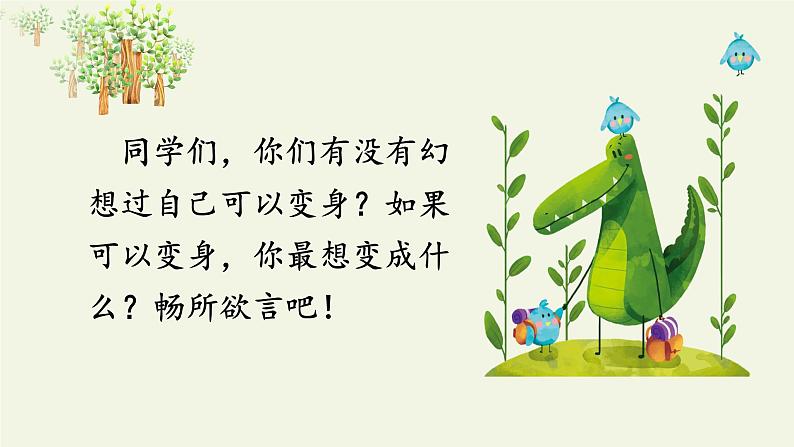 同学们,你们有没有幻想过自己可以变身?如果可以变身,你最想变成什么?畅所欲言吧!