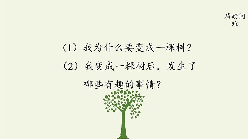 (1)我为什么要变成一棵树?(2)我变成一棵树后,发生了 哪些有趣的事情?