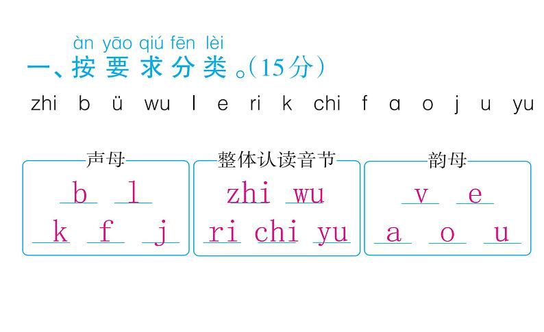 统编版语文一年级上册期中达优测试题 课件(共15张PPT)