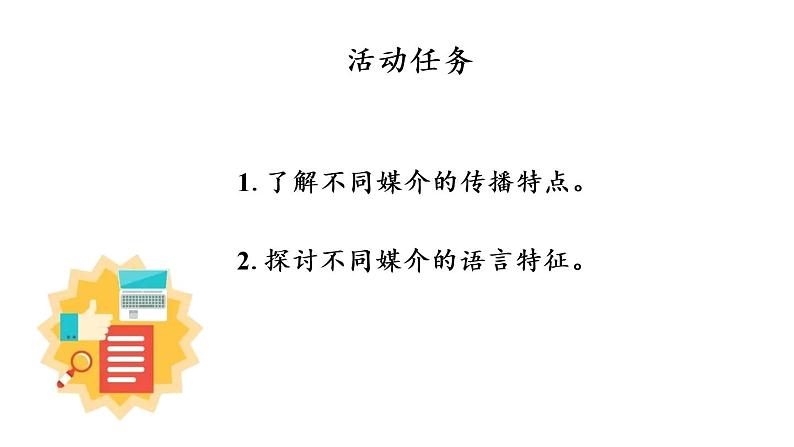 这是一份高中语文人教统编版必修 下册一 认识多媒介教案配套ppt课件,共52页。PPT课件主要包含了认识多媒介,善用多媒介,辨识媒介信息等内容,欢迎下载使用。