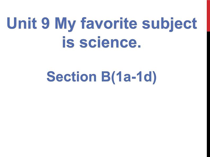 这是一份初中英语人教新目标 (Go for it) 版七年级上册Section B精品课件ppt,文件包含人教版新目标英语七上Unit9MyfavoritesubjectisscienceSectionB1a-1dpptx、人教版新目标英语七上Unit9MyfavoritesubjectisscienceSectionB1a-1d同步导学案doc、SectionB1bmp3、SectionB1cagainmp3、SectionB1cagain_clip1mp3、SectionB1cagain_clipmp3、SectionB1cmp3、经典英文儿歌快乐星期歌DaysoftheWeek_腾讯视频mp4等8份课件配套教学资源,其中PPT共27页, 欢迎下载使用。