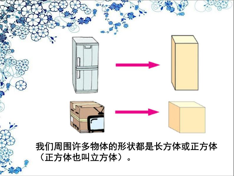 我们周围许多物体的形状都是长方体或正方体(正方体也叫立方体)。