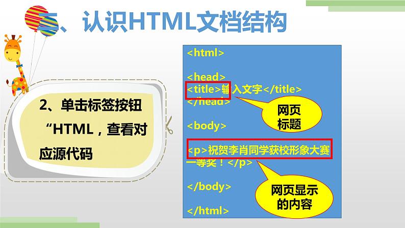 这是一份信息技术第五节 认识标记语言HTML一等奖课件ppt,共9页。