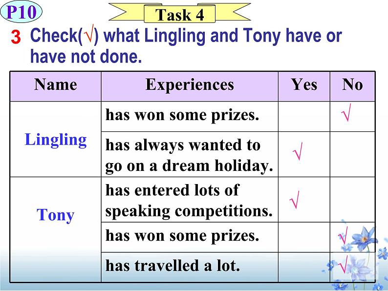 Wrk in pairs. Ask and answer questins abut what Lingling and Tny have r have nt dne.