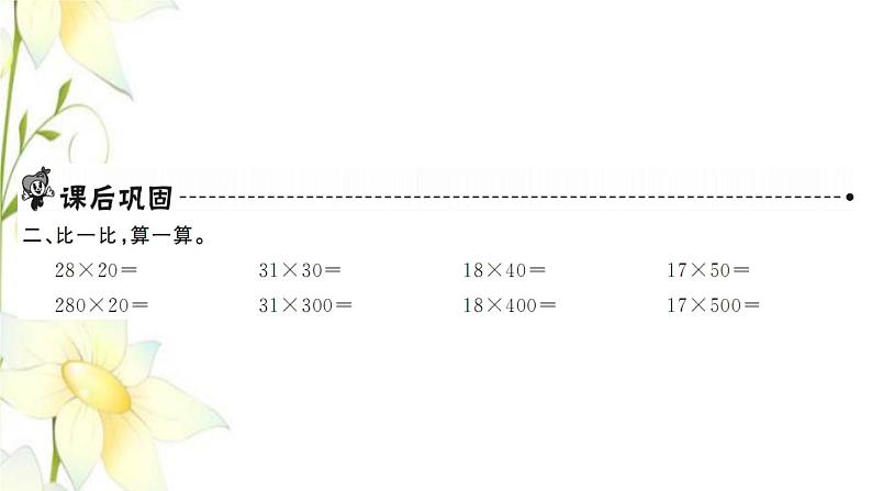 人教版三年级下册口算乘法作业ppt课件: 这是一份人教版三年级下册口算乘法作业ppt课件,共8页。