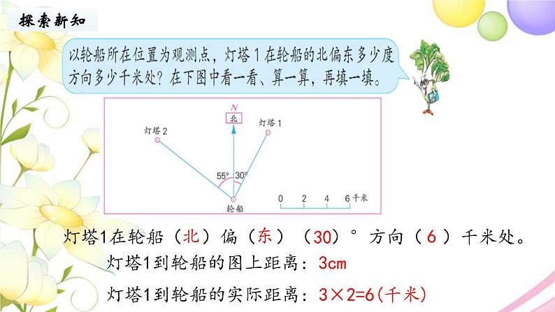 灯塔1到轮船的实际距离: 3×2=6(千米)